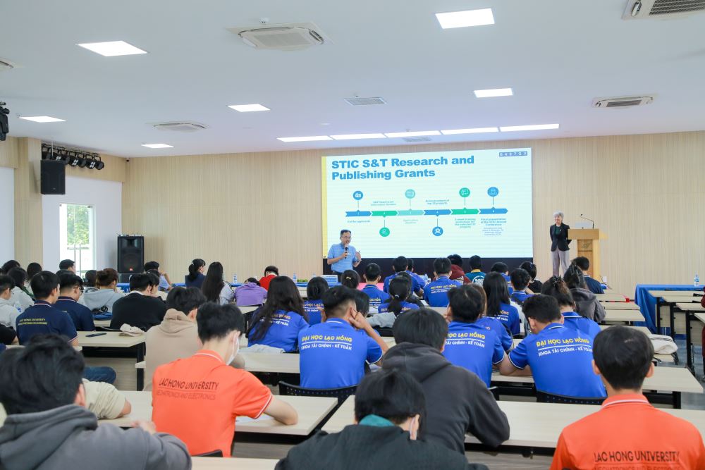 On October 29, 2024, students from the Faculty of Finance and Accounting at Lac Hong University participated in a seminar organized by Arizona State University (ASU), centered around the theme “Science, Technology, Innovation, and Creativity” (STIC). This event is part of an ongoing collaboration between ASU and Lac Hong University, aimed at advancing STEM fields within Vietnamese higher education institutions and providing students with access to advanced knowledge and skills in the rapidly evolving technological landscape.