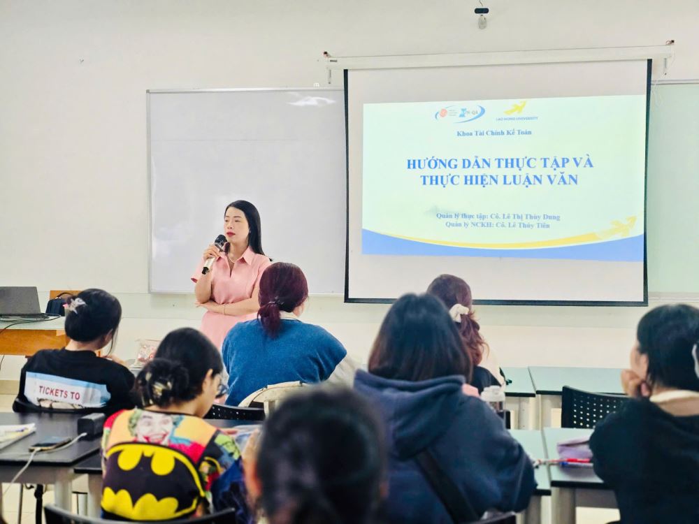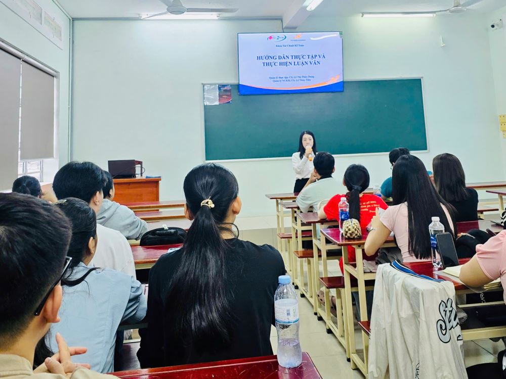 To help students gain a clear understanding of internship regulations at enterprises, as well as the significance of scientific research and thesis completion, the Faculty of Finance and Accounting organized an information session at 2:00 PM on February 7, 2025, in a classroom at Campus 5. The session was held for students of the 2022 cohort from three majors: Finance – Banking, Accounting, and Logistics & Supply Chain Management.