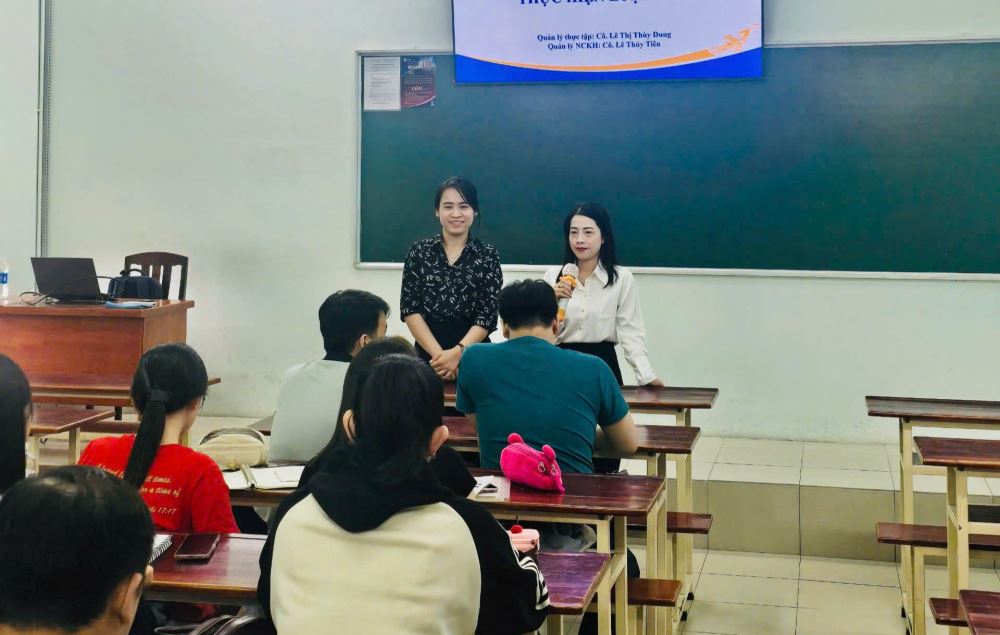 The event was attended by Ms. Le Thuy Tien, MSc – in charge of scientific research, and Ms. Le Thi Thuy Dung – in charge of internships. During the session, students received detailed guidance on the internship process, thesis requirements, and had the opportunity to discuss and update themselves on current enterprise regulations regarding interns.