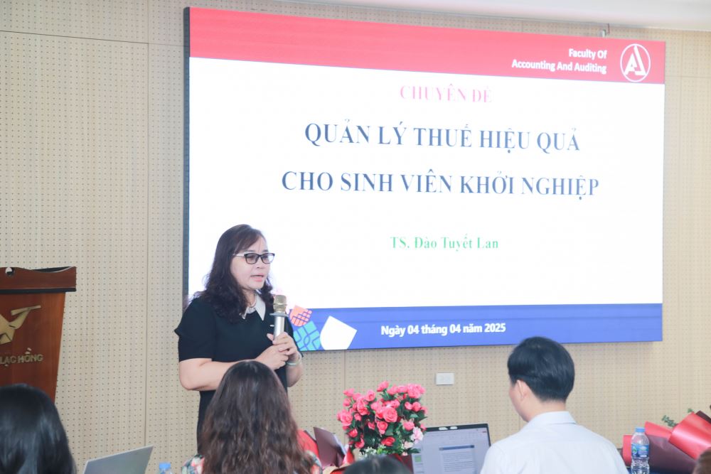 On the morning of April 4, 2025, a seminar titled “Effective Tax Management for Student Startups” took place at Room B203 – Campus 1, Lac Hong University. Organized by the Faculty of Finance and Accounting, the event attracted a large number of students interested in entrepreneurship, especially those planning to establish and develop their own businesses in the future.