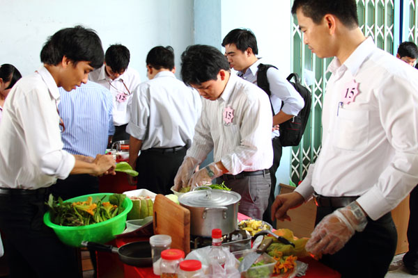 Đội số 13 gồm thầy Huỳnh Cao Tuấn, Nguyễn Trọng Vinh, Trần Công Chiến tham dự với các món: cá bống kho tiêu, ếch xào sả ớt, bầu chấm chao, trái cây tráng miệng. Thực đơn bò trộn rau mầm, gỏi sứa, nước mắt quê hương, rau câu tráng miệng do thầy Nguyễn Hữu Nam, Trần Thanh Việt, Trịnh Quang Nhật – đội số 14 chế biến. Và đội thứ ba tham dự hội thi là thầy Trần Thanh Phương, Nguyễn Bình Trọng, Đỗ Văn Đẳng (số 15) với món gỏi bưởi, lẩu mắm, trái cây tráng miệng. Những chuyên viên IT vốn quen làm việc trên máy tính, thao tác trên máy tính nhiều hơn bếp núc nhưng các thầy đã mang lại bất ngờ cho đồng nghiệp bằng các sản phẩm đẹp mắt và ngon miệng.