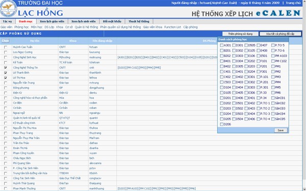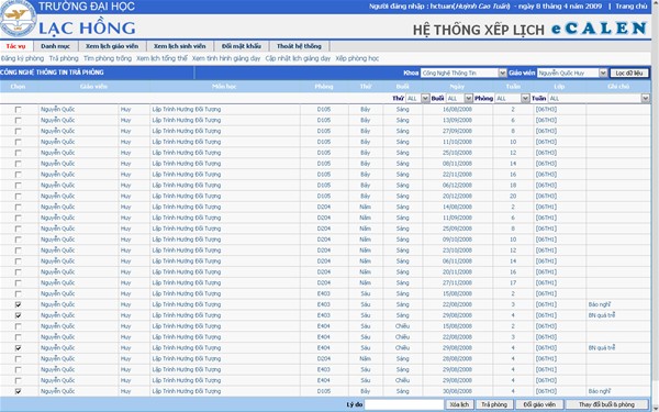 Trên giao diện đồ họa trực quan, hệ thống giúp cho người sử dụng tiết kiệm được nhiều thời gian và công sức trong khâu xếp lịch, ghi nhận thông tin giảng dạy và kiểm tra của Phòng Đào Tạo.