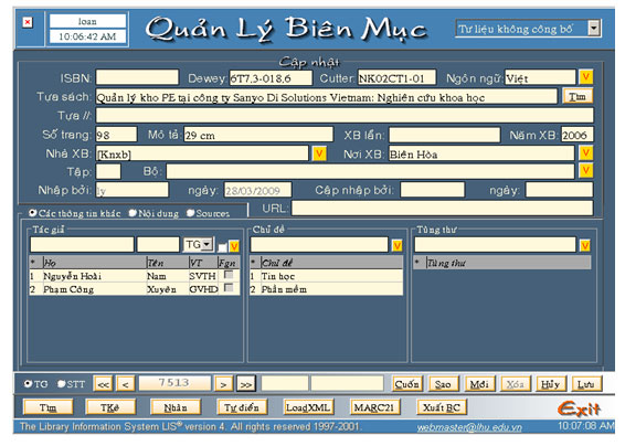 ü Cập nhật biên mục của từng quyển sách hay tài liệu.