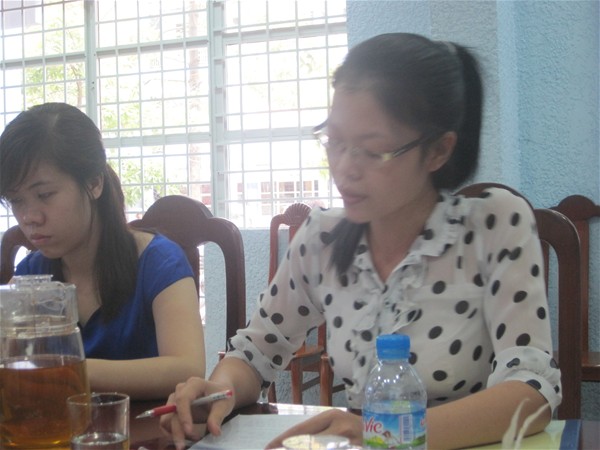 Cô Nguyễn Thị Thu Hiền- nhóm chuyên trách 1, đang góp ý tiêu chuẩn 2 và tiêu chuẩn 10...
