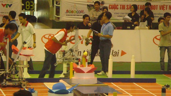 Robocon Lac Hong's teams participate in the Southern regional qualifying round held at the Rach Mieu Sports House, Phu Nhuan district, HCM city.