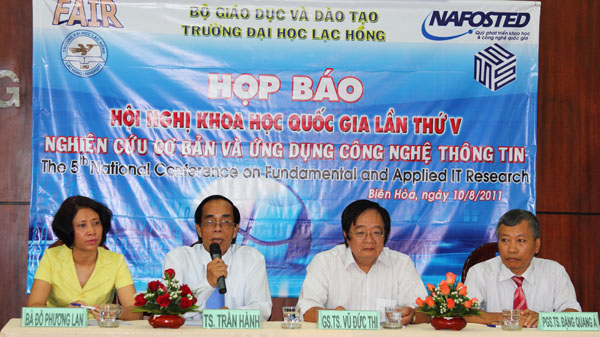 Attending the press conference was Rector of Lac Hong University, Head of Organizing Board Tran Hanh, Deputy Director of NAFOSTED Do Phuong Lan, Chairman of Science Council of Institute of Information Technology, Co-Head of Organizing Board Vu Duc Thi. In addition, there was the presence of representatives of Tuoi Tre, Thanh Nien, Labour Newspapers … and Ho Chi Minh City Television, Dong Nai Television.