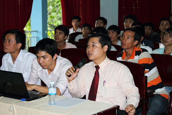 After MA Nguyen Ba Thuan reported achievements Robocon Lac Hong from 2005 until now to encourage students, MA Lam Thanh Hien opened the launching ceremony of Robocon contest 2012.The achievements that teams of Robocon Lac Hong have gained in Robocon contests are great driving forces to promote robot lovers to continue their efforts to defend the championship title successfully at Robocon Vietnam and win first prize at ABU Asia-Pacific Robot Contest.