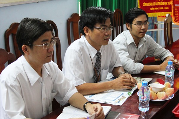 Tran Dung, M.A and Nguyen Tam Son, M.A receiving the delegation