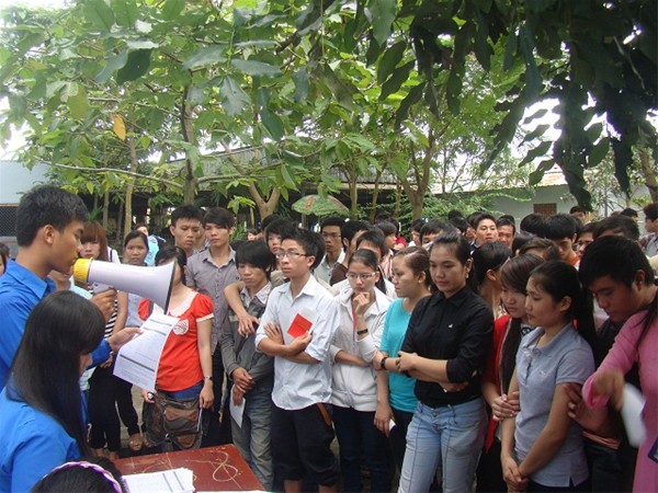 In order to mark the 15th anniversary of university establishment, at the campus 3, Lac Hong University’s Youth Union cooperated with Dong Nai province’s Red Cross Association and Cho Ray Regional Blood Transfusion and Haematology Centre in the morning of October 15, 2012 to launch a humanitarian blood donation program with the theme “A drop of blood, Millions of hearts” (Mot giot mau, Trieu tam long)