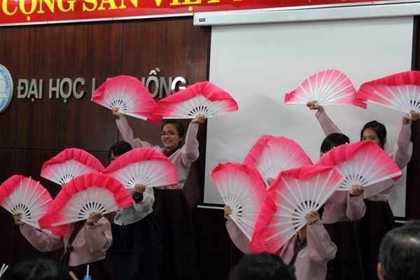 Receiving the delegation was Rector Dr. Do Huu Tai, Vice Rector Dr. Nguyen Thi Thu Lan, Vice Rector Lam Thanh Hien, M.A, heads of offices, and nearly 100 students of Korean Studies – Faculty of Oriental Studies.