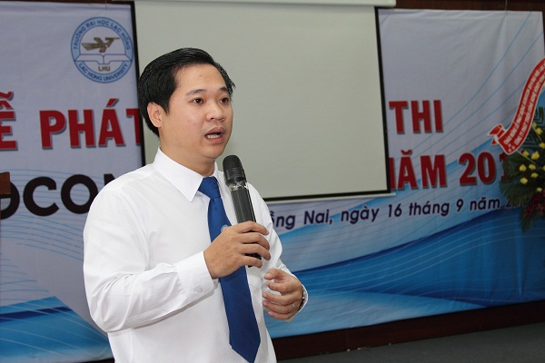 Ending Robocon ABU 2013, Lac Hong University robot teams LH-SEE and LH-EAGLE took second place and third place, respectively at the Asia-Pacific Robot contest. This has urged those who love inventing robots and thirst for conquering this playground to actively participate in the Robocon movement launching ceremony. LHU offers them opportunity to realize their passion by holding a launching ceremony of Robocon 2014 in the morning of September 16. Attending the ceremony was People's Teacher Dr. Do Huu Tai - Chairman of the Trustees Board - Rector; Dr. Nguyen Van Nam - Vice Chairman of Labor Union, Lam Thanh Hien, M.A - Head of Robocon delegation, representatives of department, offices, and centers and a large number of students at all levels.