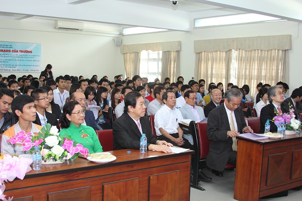 This morning on February 27, LHU in cooperation with the Overseas Human Resources and Industry Development (HIDA) the Ministry of Economy and Trade and Industry (METI) and Japanese businesses co-organized Job Fair firstly in 2014. The event took place at room B 203 (used for reports or presentations of businesses, introducing their products and recruitment notifications) and B 305 (used for exchange program between businesses and students on recruitment needs, human resources developing plan, salary level,.... ). Attending the program was METI's Mr. Goto Yuzo - Director of Technical Cooperation Department; HIDA's Mr. Takeda Sadao - Vice Chairman; Mr. Okita Fumio and Ms. Koganemaru Miyuki - experts of HIDA; LHU's People's Teacher Dr. Do Huu Tai - Rector, Meritorious Teacher Dr. Nguyen Thi Thu Lan - Vice Rector; Lam Thanh Hien, MSc - Vice Rector. The program also attracted 13 Japanese businesses and a large number of senior students.