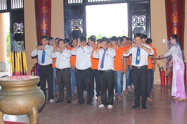 Lac Hong Robocon delegation burnt incense at Tran Bien Temple of Literature.