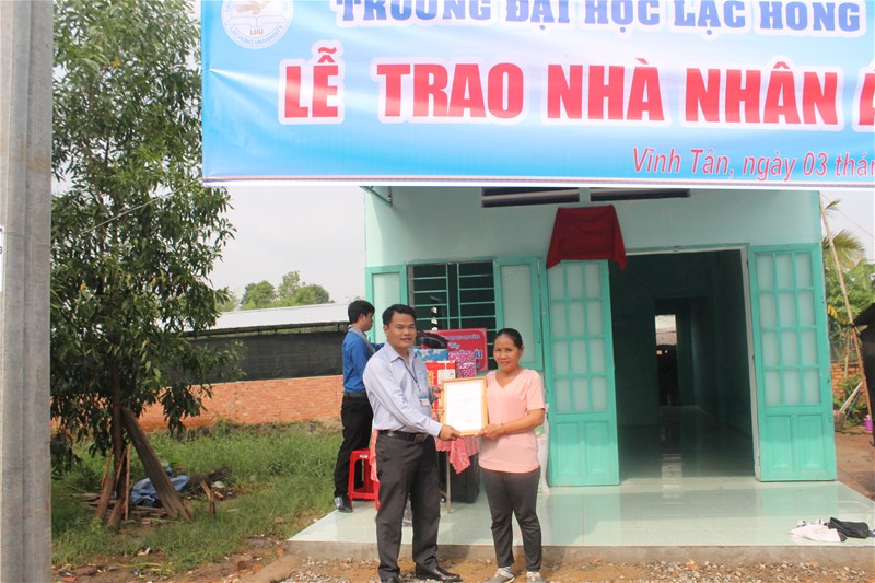 After over two weeks of building "Charity house" in Green Summer campaign 2016, Lac Hong University in cooperation with Vinh Tan commune People's Committee and Green Summer team held a ceremony to hand over a charitable house to the family of Mrs. Do Thi No and Mr. Xi A Sang. The house was built on an area of 50 sq.m at a cost of VND 60 million contributed by LHU teachers, students, Charity Association and benefactors.