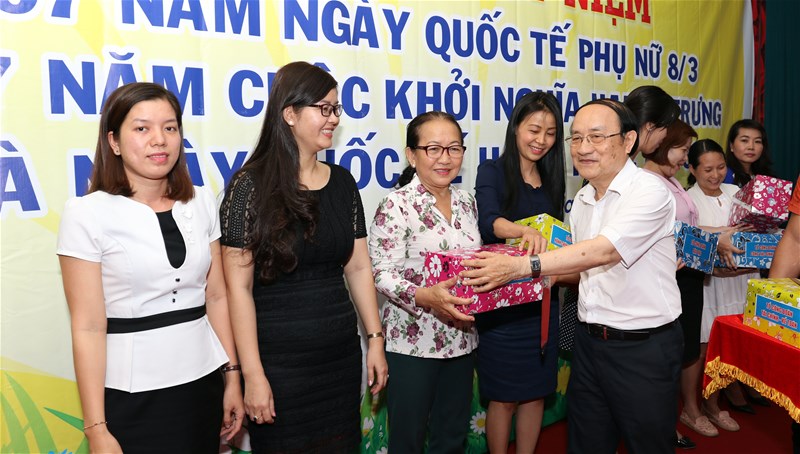 Mr. Diem Cam Thu on behalf of the Executive Committee of Trade Union presented gifts to female officials, lecturers and staff.