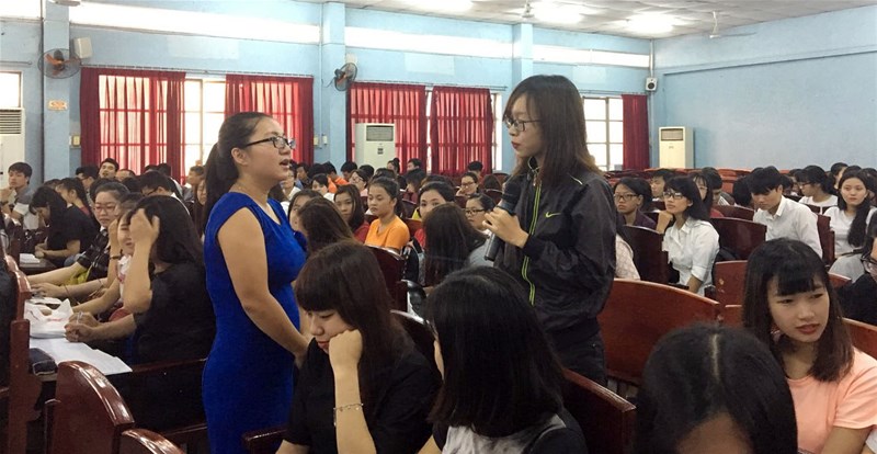 At the program, the participants actively joined in activities and skill tests. Speaker Tran Thu Hang and students solved questions together such as Who are you? Start-up or Employed? What do businesses need" and How do we do?...
