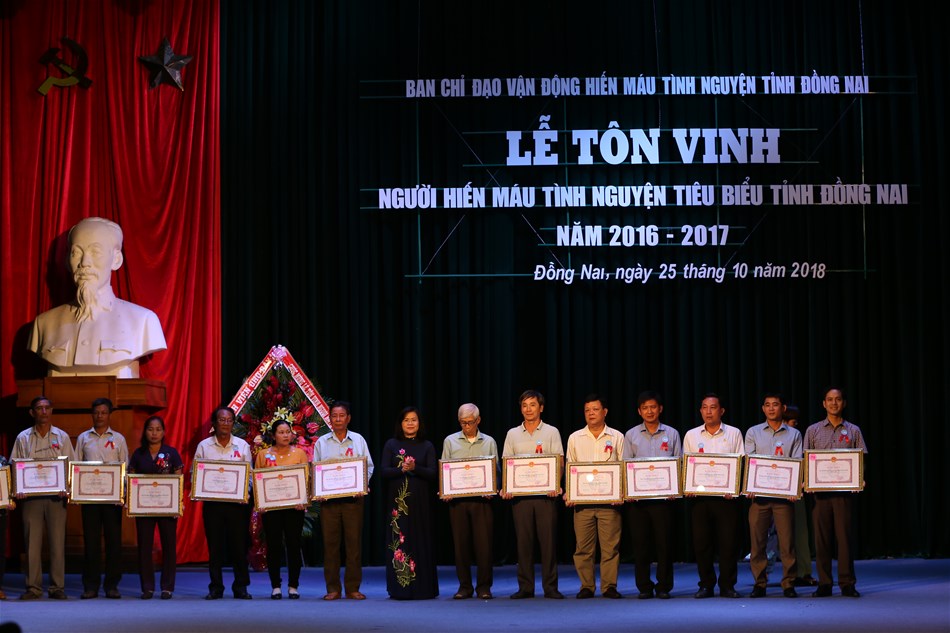 At Dong Nai provincial Event and Convention Center, the provincial Mobilization Board for Voluntary Blood Donation on October 25 held a ceremony to review 2016 and 2017 voluntary blood donation movement and honor typical blood donors.