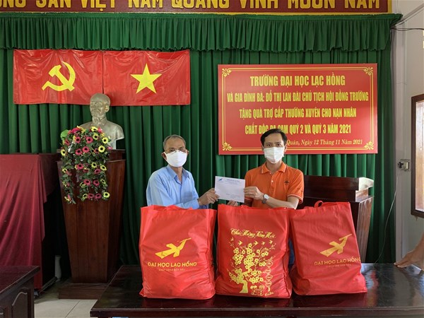 On behalf of LHU and the family of Ms. Do Thi Lan Dai - Chairwoman of the University Council, the Youth Union – Student Association on November 12 visited and presented gifts and subsidies Quarter II and III/2021 worth VND 168 million to 70 AO/dioxin victims in Trang Bom, Xuan Loc, Cam My and Dinh Quan districts, Dong Nai province.