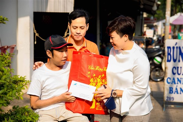 On behalf of LHU, Ms. Do Thi Lan Dai - Chairwoman presented gifts and monthly allowances to AO/dioxin victims