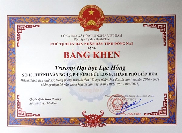 The Provincial Association of Victims of AO/dioxin also honoured 77 outstanding collectives and individuals. In addition, LHU, Lac Hong Bilingual School and Tan Buu Long Company received the certificates of merit from the Chairman of the Dong Nai People's Committee for their contributions to the “Action for AO/dioxin victims” movement over the past 5 years.