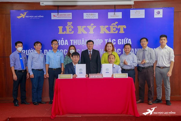 LHU on April 26 solemnly held a ceremony to sign cooperation agreements with five enterprises including Golden Palace Wedding & Convention Center, Eros Palace Wedding & Convention Center, Aurora Hotel, VietHoliday Tourist Company and Thai Loan Travel Company. The aim of the MoU signing was to promote the cooperative ties with businesses and create more apprenticeship and job opportunities for students majoring in Tourism and Travel Services Management.