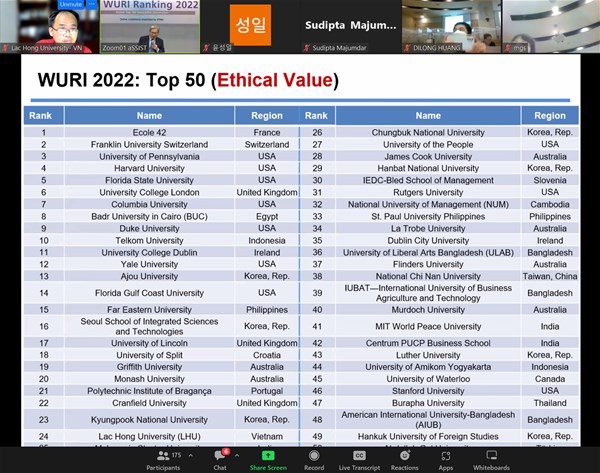 Also at the online conference, LHU ranks 85th in the WURI ranking for 2022 (up 8 places compared to the previous year), 43rd among the 50 best universities in startup and innovative values, 46th in the Top 50 towards Industrial Application and 3rd in the Top 50 supporting Fourth Industrial Revolution.