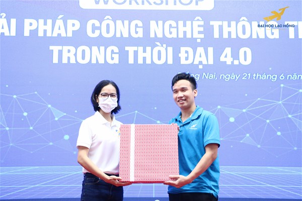 During the workshop, students of the Faculty of Information Technology actively interacted with the guest speakers by asking questions. They also received many gifts from enterprises.