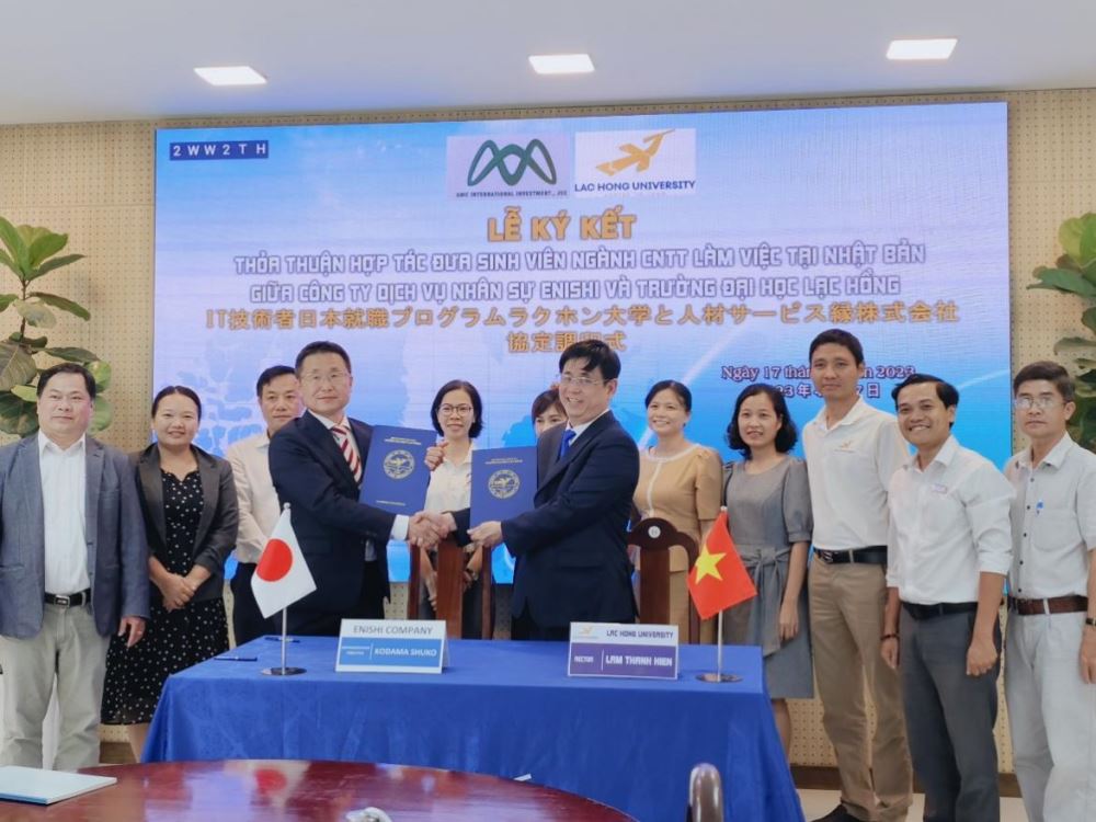 On April 17, 2023, the Office of International Affairs, the Faculty of Information Technology and the Japanese Studies Department, LHU jointly organized a meeting to exchange and sign a cooperation agreement with ENISHI HR Services Company, aiming to send IT students to work in Japan.