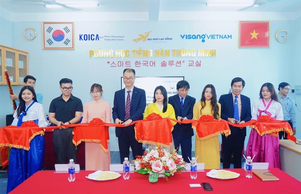 - On the morning of June 15th, 2023, Lac Hong University (LHU), Department of Korean Studies in cooperation with Visang Vietnam Company Ltd., and the Korean International Cooperation Agency (KOICA) solemnly organized the opening of smart Korean language class - KlaSS, sponsored by the Visang Education Group.