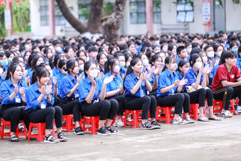 The ceremony was attended by Mr. Ngo Hong Khang - Vice Chairman of Dong Xoai City; Mr. Ha Minh Quan - Head of Department of Education Quality Management, Binh Phuoc Department of Education and Training; Mr. Ngo Van Quyen - Deputy Head of Dong Xoai City's Department of Education; Mr. Ha Tuan Kiet - Party Cell Secretary, Principal of Nguyen Du High School, teachers and pupils. From LHU, there was Assoc. Prof. Dr. Nguyen Vu Quynh - Vice Rector along with some teachers and students.