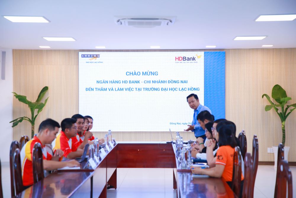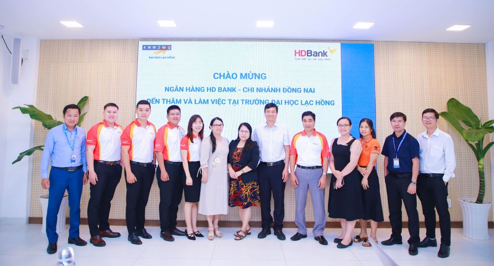 On September 26 morning, 2023, representatives of LHU including Mr. Nguyen Vu Quynh - Vice Rector; Mr. Nguyen Van Trung - Director of Center of Admissions and Public Relations, Ms. Le Thi Thu Ha - Deputy Head of Office of Financial Affairs; Mr. Nguyen Hai Quan - Head of Division of Corporate Relations and Student Support and faculty leaders welcomed and worked with Mr. Nguyen Tuan Anh - Director of Ho Chi Minh City Development Joint Stock Commercial Bank (HD Bank), Dong Nai branch and his associates.