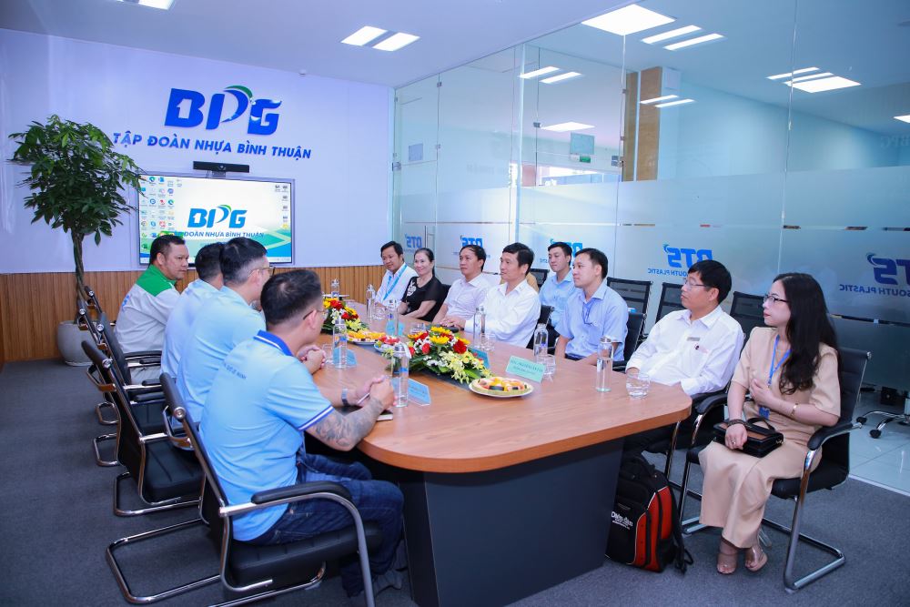 Welcoming the LHU delegation were Mr. Hoang Tuan Anh - Deputy General Director of Binh Thuan Plastic Group, Director of Binh Thuan South Plastic; Mr. Tran Ton Khanh - Marketing Director; Mr. Hoang Van Dung - Head of Technical Department; Mr. Nguyen Duy Nhat - Head of Production and their partners.