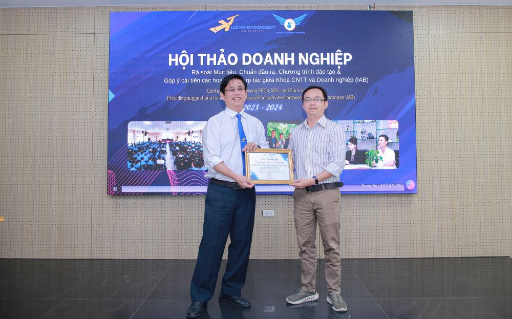 The contributions and discussions of the IAB at the meeting are essential information to help the Faculty of IT improve its training program and update the knowledge content for students to meet the requirements of enterprises.