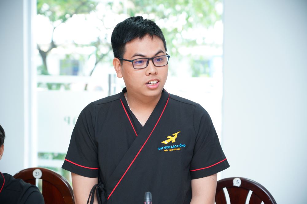 Student Nguyen Huynh Duc from class 20DN111 acting on behalf of the five students to express heartfelt gratitude and thanks to leaders and lecturers