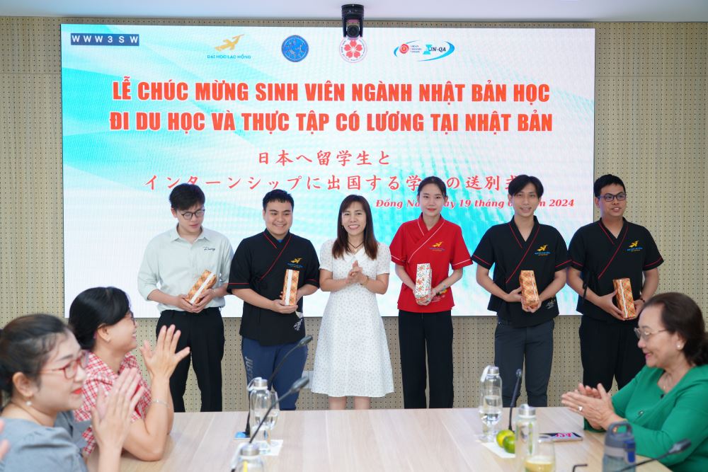 The farewell ceremony took place successfully with the participation and presence of Dr. Nguyen Thi Thu Lan - Vice Rector; Nguyen Thi Nhu Thuong, M.A - Vice Dean of Faculty of Oriental Studies; Tran Minh Thuy Duong, M.A – Head of Department of Japanese Studies; Nguyen Thi Hoang Oanh, M.A – Head of Office of International Affairs; Hoang Tien Dung, M.A - Deputy Head of Office of International Affairs; all lecturers of the Department of Japanese Studies; and the presence of 5 students who are about to study and join paid internships in Japan.