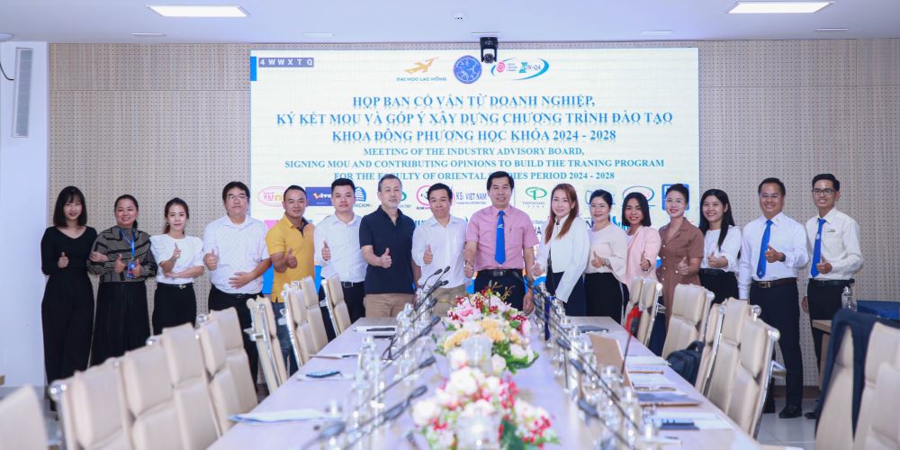 On the morning of April 13, 2024, at campus 1, the Faculty of Oriental Studies, LHU solemnly organized an Industrial Advisory Board (IAB) meeting, MoU signing ceremony and comments on building training programs for the 2024 - 2028 period.