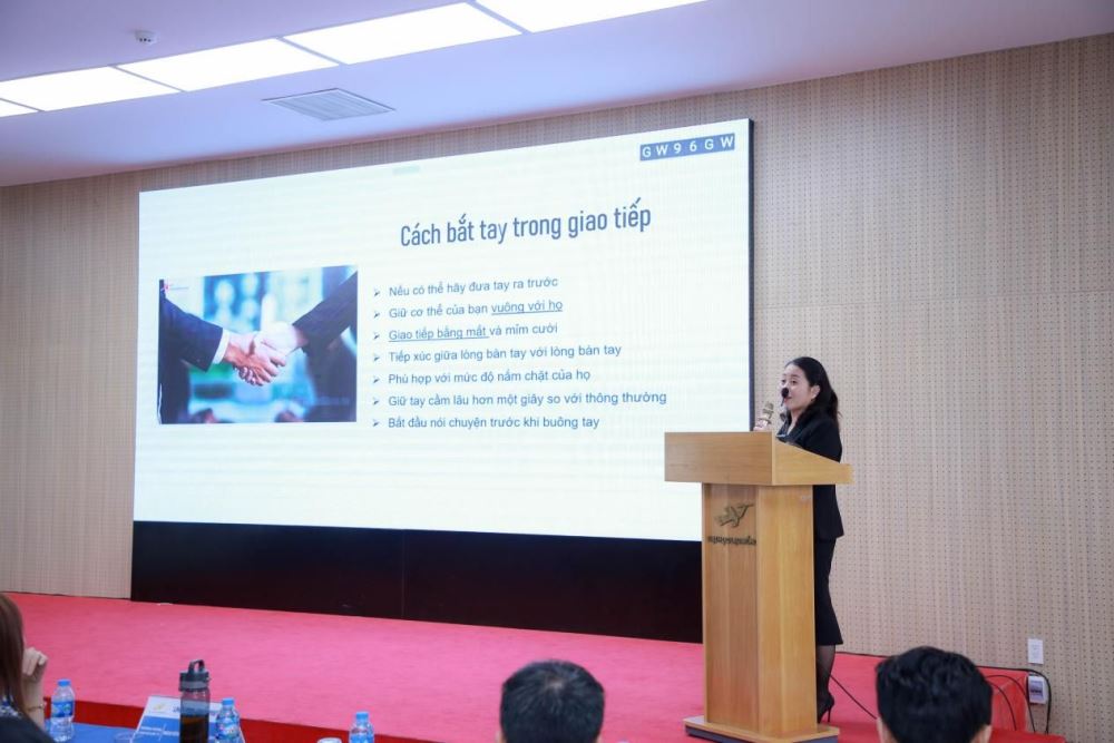 The second part was the Diplomatic Protocol and Etiquette presented by Ms. Phan Ha Uyen - Head of the Department of Consular Affairs & Overseas Vietnamese. She equipped lecturers and students with basic principles of protocol and etiquette, rules for receiving guests, banquet arrangement, gift giving..., and other useful information.