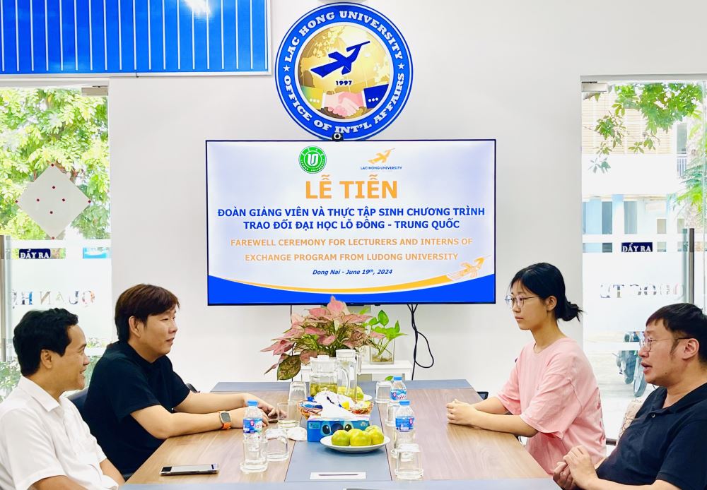At the farewell event, LDU was attended by Dr. Xiao Mao Yuan - lecturer and student Xue Zixin. From LHU, there were Mr. Hoang Tien Dung - Deputy Head of Office of International Affairs; Mr. Luong Van Huy - Department Head of Chinese Language and staff of the Office of International Affairs.