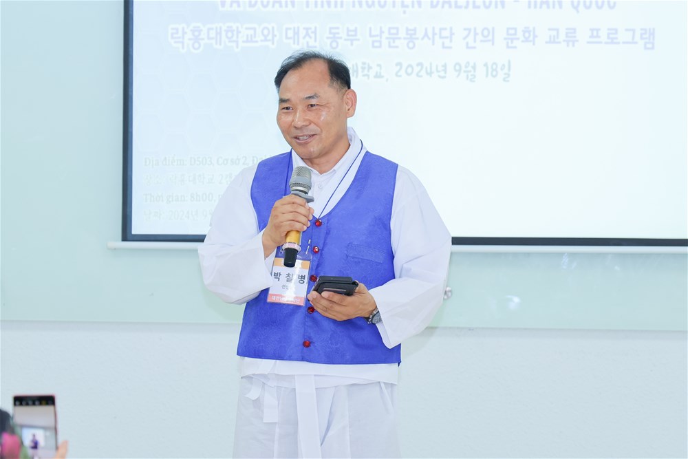 At 8:00 a.m. on September 18, 2024, at Hall D503, Campus 2, the Department of Korean Studies under the Faculty of Oriental Studies, LHU successfully organized a cultural exchange program between its students and a volunteer delegation from Daejeon province, Korea, consisting of 25 members as oriental medicine doctors and students.
