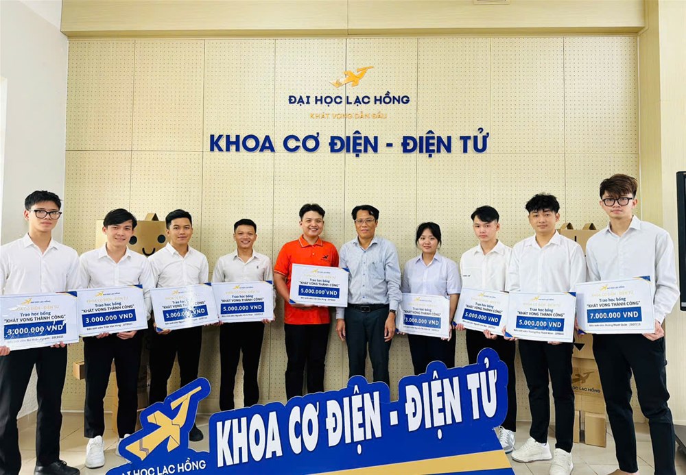 Following the annual scholarship program "Aspiration for success" sponsored by businesses and alumni, on the afternoon of April 3, 2025, the Faculty of Mechatronics and Electronics held a scholarship award ceremony, the second semester of the 2024–2025 academic year for nine studious and underprivileged students.