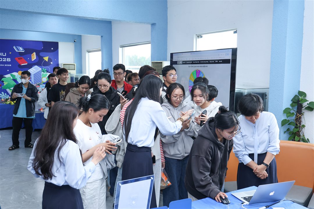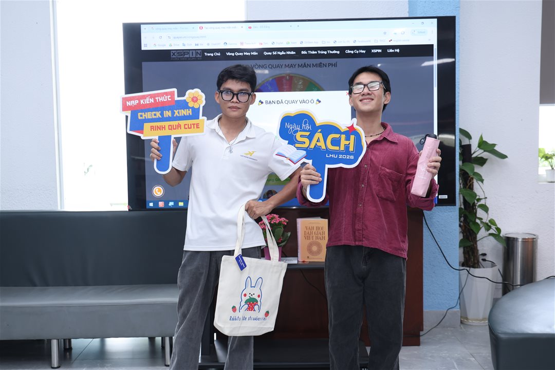 Beyond book displays, the festival also offered a variety of engaging interactive activities. Lecturers, staff, and students enthusiastically joined activities such as checking in at the book exhibition area, spinning the lucky wheel, and receiving meaningful souvenirs from the organizers. These activities created a lively and joyful atmosphere while strengthening the sense of connection within the LHU community.