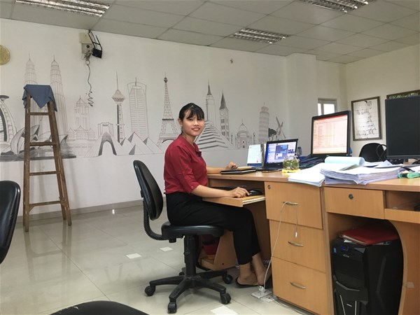 Tuyết Trâm chụp hình lưu niệm cùng đồng nghiệp tại công ty mình đang công tác