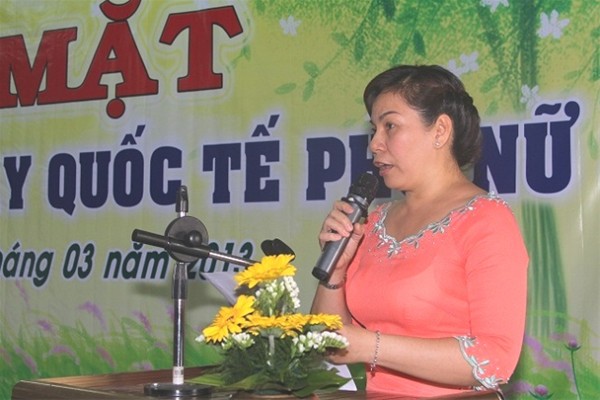 Cô Hồ Thị Hải Yến - Phó Ban vì sự tiến bộ của phụ nữ phát biểu