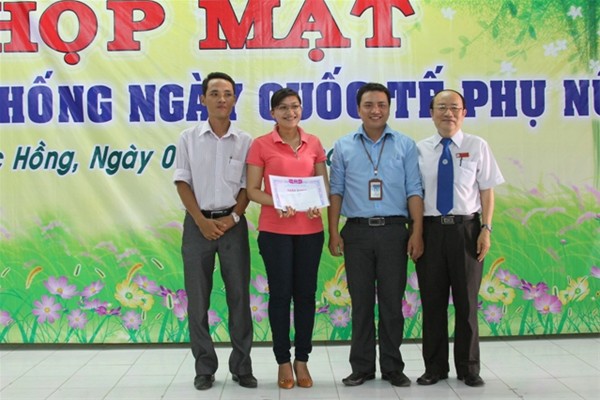 Buổi lễ được tiếp tục với phần trao tặng hoa từ Ban giám hiệu nhà trường dành cho đại diện nữ của các Phòng ban, Chi đoàn cơ quan. Nhằm lưu lại kỷ niệm buổi họp mặt, BGH nhà trường cùng chi đoàn cơ quan cũng đã có những quà nhỏ gửi đến các nữ CB, GV, NV xinh đẹp của nhà trường.