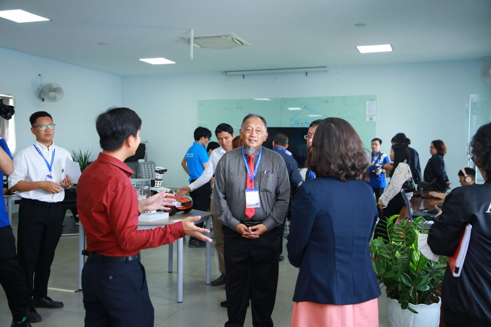 Especially, when visiting the AI Lab, the assessment team was so interested in robots and technology projects of lecturers and students. Assoc. Prof. Dr. Eric Wibisono - University of Surabaya, Chief of the assessment team directly "interviewed" robots of LHU. Through the programmed software, the robot's responses and actions made him quite excited and linger longer than scheduled.