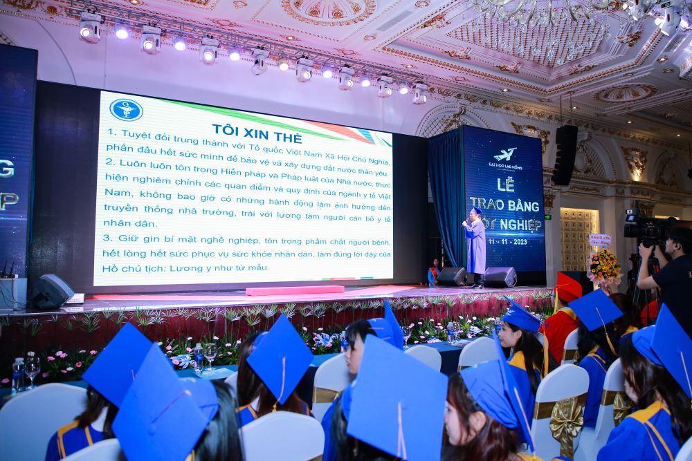 At the event, the new pharmacists solemnly performed the medical oath rite. This is one of the most meaningful moments of the ceremony.