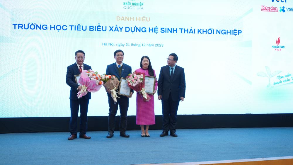 Representing LHU, Dr. Nguyen Van Tan - Dean of Faculty of Administration and International Economics (middle) receiving the title "Outstanding university in building startup ecosystem"