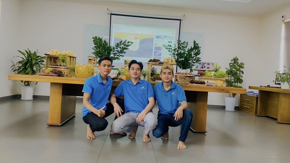 Student Tran Van Cuong (first, left) receiving the Nang Buoc Thu Khoa Scholarship for three consecutive years