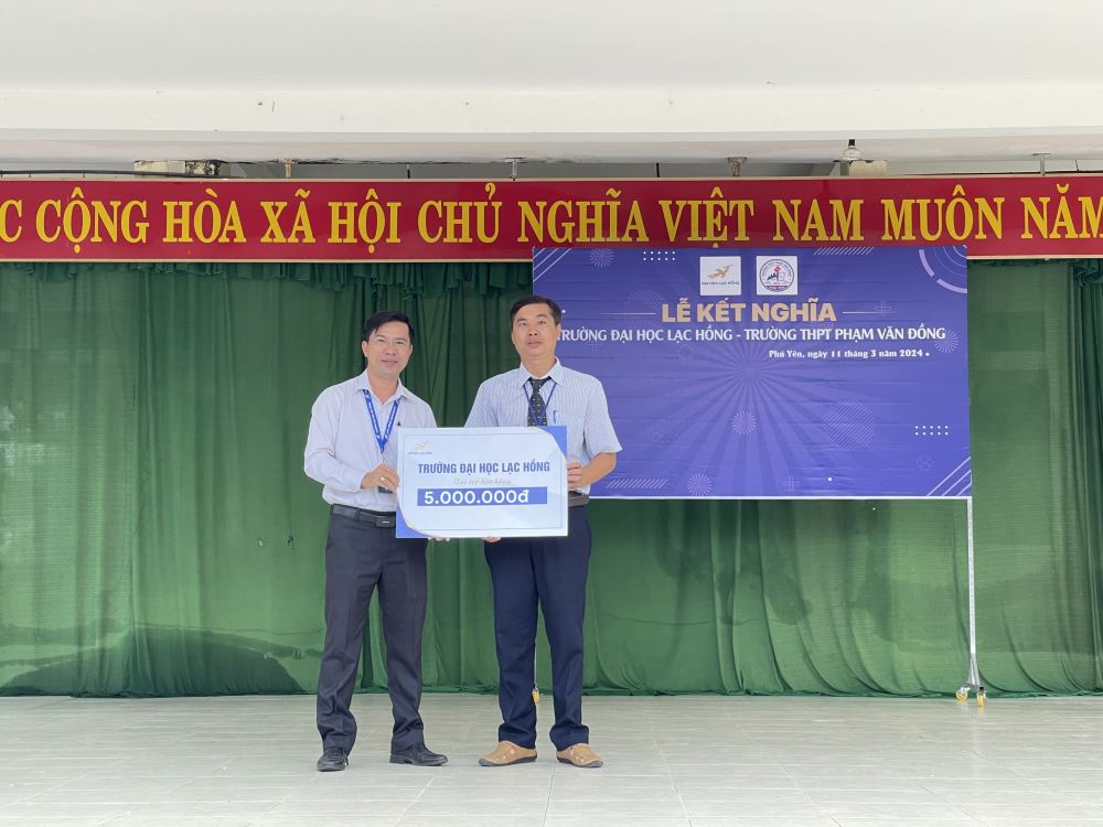 Dr. Nguyen Van Trung - Director of Center Admissions and Public Relations (left) awarding scholarships to twinned units