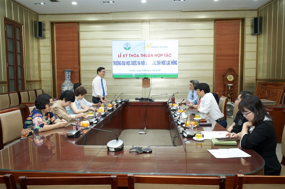 Within the framework of the cooperative events, on March 28, 2024, LHU visited Hanoi University of Pharmacy (HUP) and participated in the signing ceremony of the cooperation agreement between the two universities. Attending the signing ceremony, on LHU’s side, there were Dr. Lam Thanh Hien - Rector; Dr. Le Phuong Truong - Head of Office of Educational Testing and Q.A. For HUP’s side, there were Prof. Dr. Nguyen Hai Nam - Rector; Associate Professor Dr. Dinh Thi Thanh Hai - Deputy Secretary of the Party Committee, Vice Rector; Associate Professor Dr. Nguyen Manh Tuyen - Vice Rector; along with representatives of related departments.